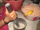 ギーに水を加えながら3日間、銅の容器でひたすらかきまぜていくだけ・・・なんという自然さ、ちょっと考えられない単純さのなかから、すばらしい天然のクリームができあがっているのです。 数千年というアーユルヴェーダの歴史を垣間見るような気がしますね。 去年(2008年)10月に先生を訪れてみると、「何で来たんだ?」と先生が聞くので、「最近、ちょっと元気が出ないから、元気にするような何かがあったら、ください」と言いました。 |
