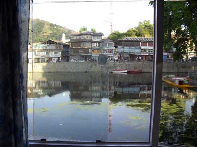 サフラン畑で、スーフィー(神秘家)に出会った私はいま(2009年5月16日)、ダルゲートの近くにある、「ヌール・ゲストハウス」に投宿してます。 二階の私の部屋は湖(といっても始まりの部分なので、川のようですけど。。。)に面していて、3方向が全面ガラス戸なので、たいへん明るく、開けていて、気にいっています。