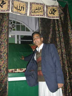 グラム・ラスー。私に、入っていいよ、と言ってる。 写真をとってもいい、と言われたので、写真をとっていると、だれかが大声で泣きはじめました。泣きながら、語りかけているようです。それは、ひとりの男の人でし たが、神にむかって語り、泣いているのです。 このストレートなアプローチはス-フィーの特徴の一つですね。 私は以前からスーフィーの物語が好きだったので、こういう神にむかって涙をながしながら、語りかける、という話は知ってましたが、実際に目の前で見ると、驚きともと感動ともつかない、一種の感電状態におちいるような気がしました。 ショク・ババのサマーディーの隣りには、ショク・ババの師であるカジャ・マスード・ワリという聖者のサマーディーがありました。ワリというのは、「神の友人」という意味だそうです。