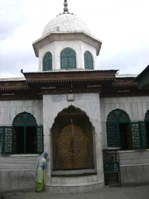 15世紀に中央アジアからわたってきたスーフィー・マスターのサマーディー。 が、敬虔なスーフィーであるのが、もともとの基盤にあります。 彼の薬局には実にいろいろな人が訪れるので、そのような人たちにサフランの口上をしゃべらせて、あとから通訳してくれたりしました。 実に、良いサフランの見分け方が、まがりなりにも言葉化できたのは、ほとんど彼の好意によっているといって過言ではないのです。 そうじゃないと、農家の話すことは、実にその瞬間に生きていて、次の瞬間には 次の真実がなんのためらいもなく出てくるのです。 すばらしいですね。 瞬間に生きていて・・・。 私は混乱しますけど・・・。 はっはっは。 彼は、のちに、私を連れてアバンティプールに行って、8世紀のヒンズー寺院や、