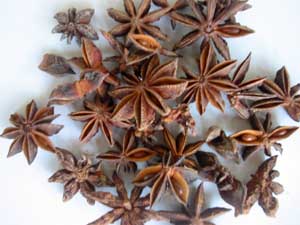 香り成分として精油約3%を含み、その主成分はアネトールで精油中の85~90%を占める。 中国料理の香りづけに広く用いられ、ヨーロッパには16世紀末にイギリスの船乗りによって伝えられ、アニスに代わるものとしてよく用いられる。 薬用としては健胃、鎮痛、駆風などの効果があると言われ、 また抗インフルエンザ薬「タミフル」の原料としても使われている。 |