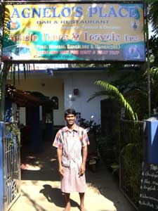 アグネロとはもう10年以上のおつきあい。ゴアのカンドリン・ビーチで、大きなゲストハウスにかこまれた一角で、小さなレストランをやっています。一生懸命がんばっていて、少しづつリッチなゴア人になろうとしている。レストランをやって、バイクを貸して、タクシーを一台もって、今年ようやく家とキッチンを新築した。「二階には部屋をつくってゲストハウスも始めたいけど、ここまで10年かかったから、あと10年かかるかもね」と言いながら、おいしいベジタブル・コルマを作ってくれました。去年、ようやくお嫁さんをもらって、幸せそうなアグネロのおいしいコルマ。今日のはイエロー・ベジ・コルマだけど、グリーン・コルマというのもあるそうですよ。 ゴアに行ったら遊びに寄ってくださいね。Tel: 9923495263 |